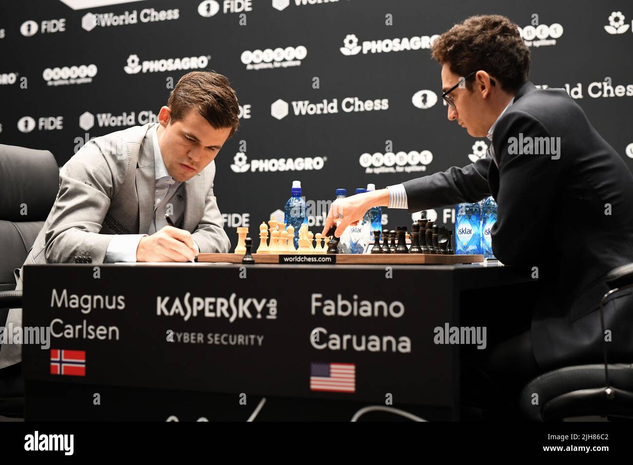 Mais l'Indien n'est pas battu. Il réussit l'exploit de gagner le tournoi des candidats de l'année suivante et affronte Carlsen pour la revanche. Le Norvégien s'impose (6,5-4,5) dans un match plus serré que le score ne l'indique. Cependant, la menace vient d'outre-Atlantique. Quelques mois plus tôt, l'Italo-Américain Fabiano Caruana réussit une performance extraordinaire lors de la Sinquefield Cup à Saint-Louis. Il s'affirme comme le plus sérieux prétendant même s'il n'est pas encore challenger.